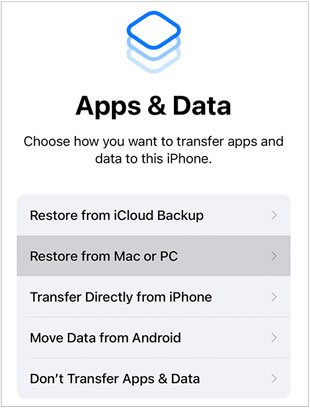 步骤 3: 打开新 iPhone 并进行设置。您将进入"应用与数据 "屏幕,在此处选择"从 iCloud 云备份恢复"。然后,您的备份数据(但不包括照片)将恢复到新 iPhone 上。