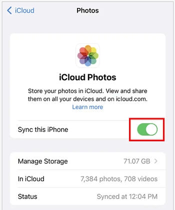 步骤一: 在旧 iPhone 上点击"设置 "应用,进入设置页面。找到顶部的" [您的姓名] ",然后选择" iCloud "。接下来,选择"照片 ",并关闭"同步此 iPhone "图标。