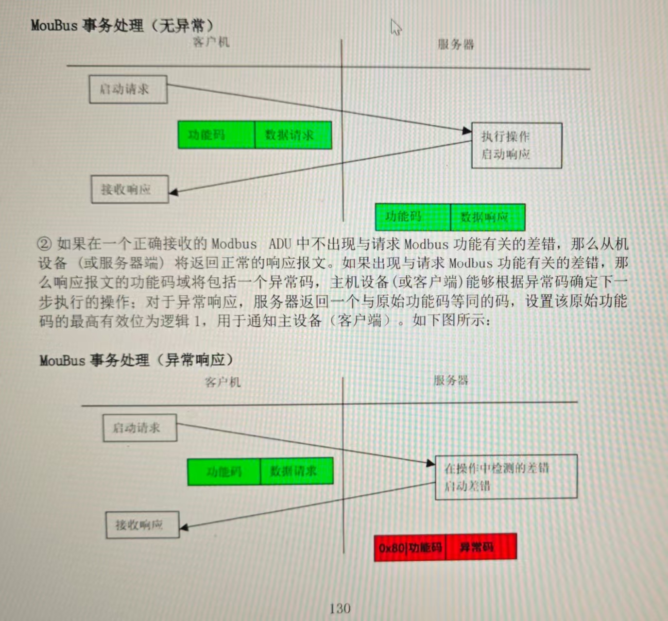 正常处理:主设备发送查询ADU。从设备收到后,执行功能码指定的操作,然后返回一个正常的响应ADU。响应中通常包含原功能码和请求的数据或操作确认。