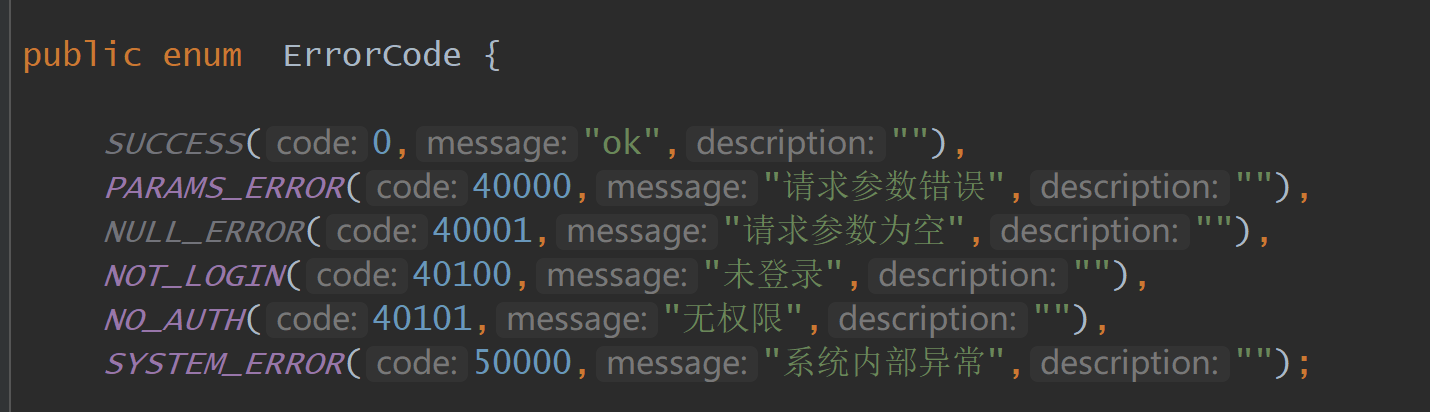 PARAMS_ERROR(40000, "请求参数错误", "具体描述"),