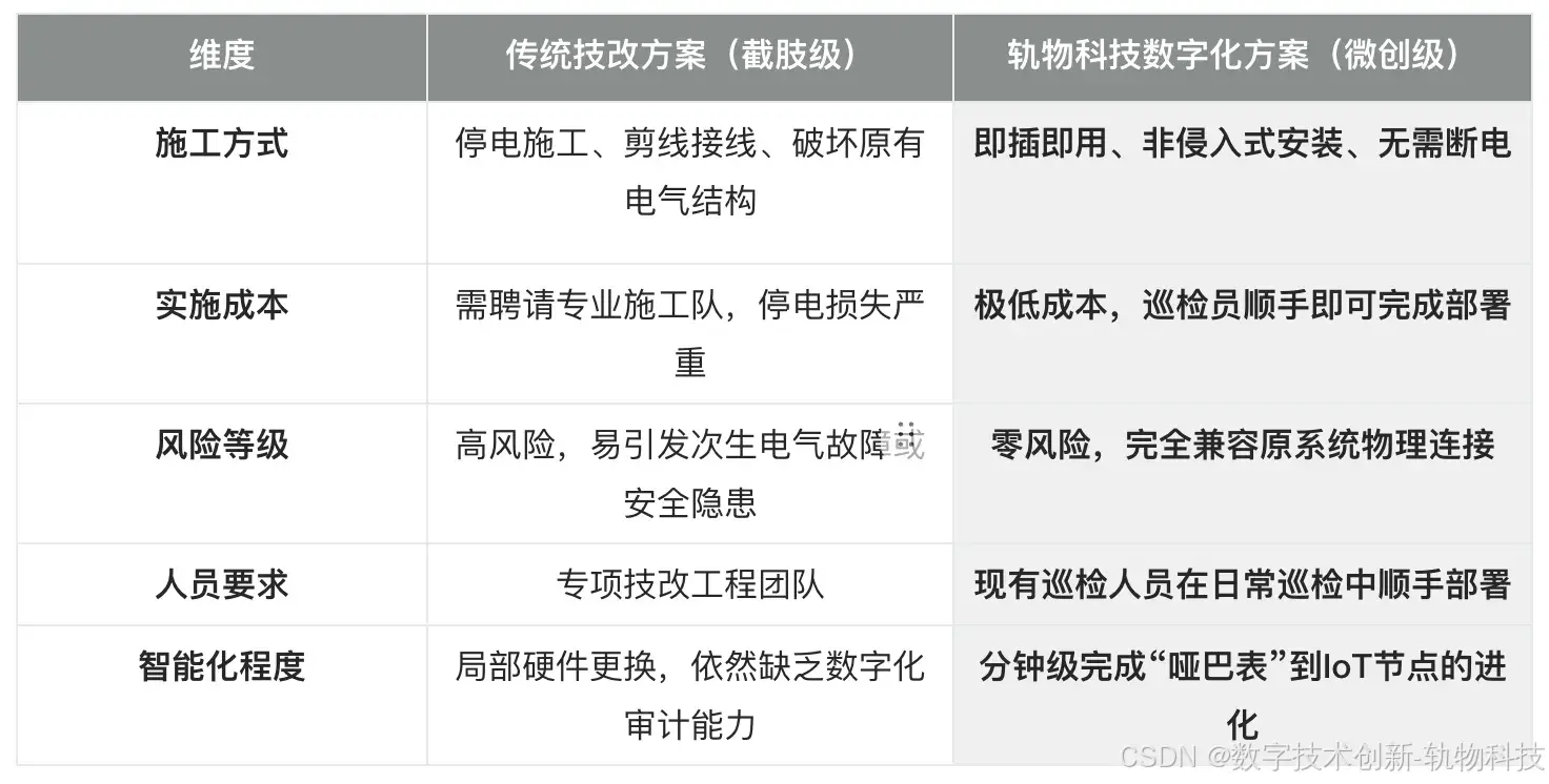 传统改造 vs. 轨物"微创"数字化技改方案对比表