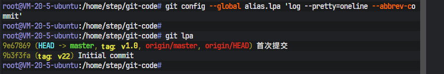 git config --global alias.lpa 'log --pretty=oneline --abbrev-commit'