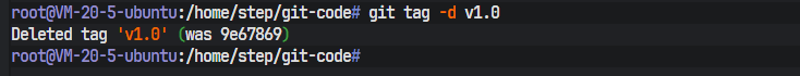 终端会提示 Deleted tag 'v1.0' (was ...),表明删除成功。