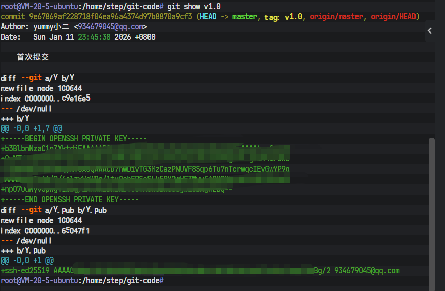 git show的输出不仅包含了该标签指向的提交信息(作者、日期、提交日志),还额外展示了标签自身的信息:Tagger(打标签的人)、Date(打标签的时间)以及标签的说明文字。这些元数据对于项目的版本追溯和审计至关重要。