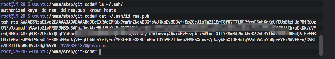 接下来,读取公钥文件的内容。可以使用cat命令。