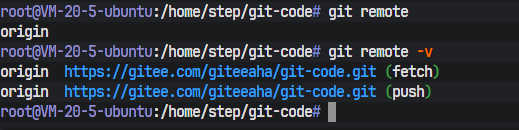 这里的输出信息更为丰富,它显示了origin这个别名同时关联了两个URL:一个用于fetch(拉取),另一个用于push(推送)。