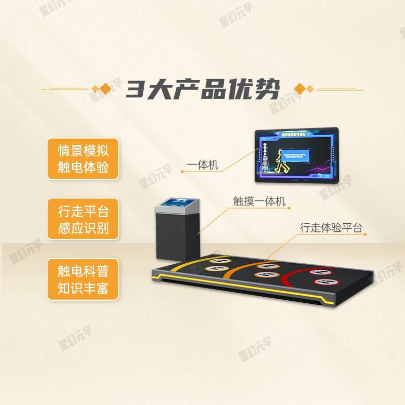 跨步电压安全体验系统的另一大亮点是其触电行走体验平台。在这个平台上,参与者将体验到模拟的跨步电压情境。平台通过感应用户的步伐、姿势及逃生动作,实时反馈触电情境,并在出现错误操作时提供即时的提示和教育。