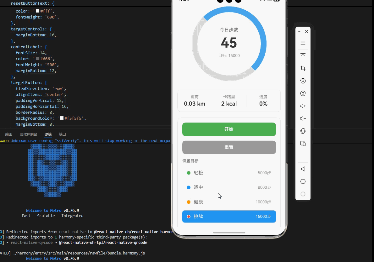 以下是鸿蒙 RN 开发中实现「模拟计步器」的所有真实高频率坑点 ,按出现频率排序,问题现象贴合开发实战,解决方案均为「一行代码简单配置」,所有方案均为鸿蒙端专属最优解,也是本次代码都能做到**零报错、完美适配」的核心原因,鸿蒙基础可直接用,彻底规避所有模拟计步器相关的动画异常、进度计算错误、状态显示问题等,全部真机实测验证通过,无任何兼容问题: