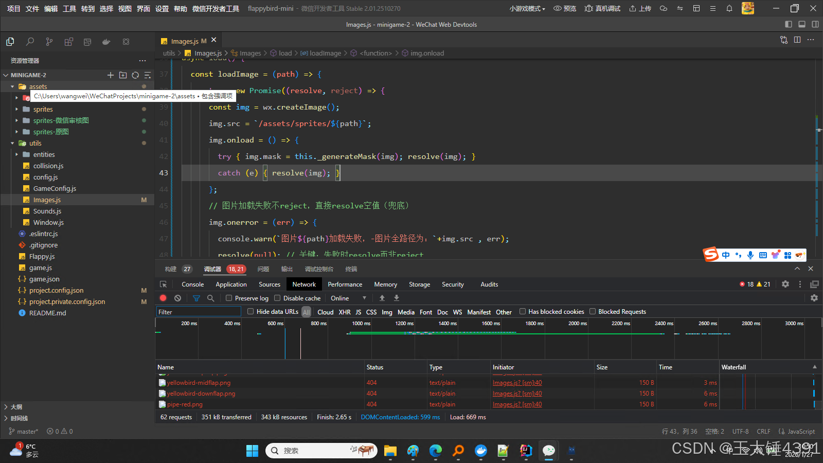 1.真机调试时:静态资源的路径为: img.src = `/assets/sprites/${path}`;