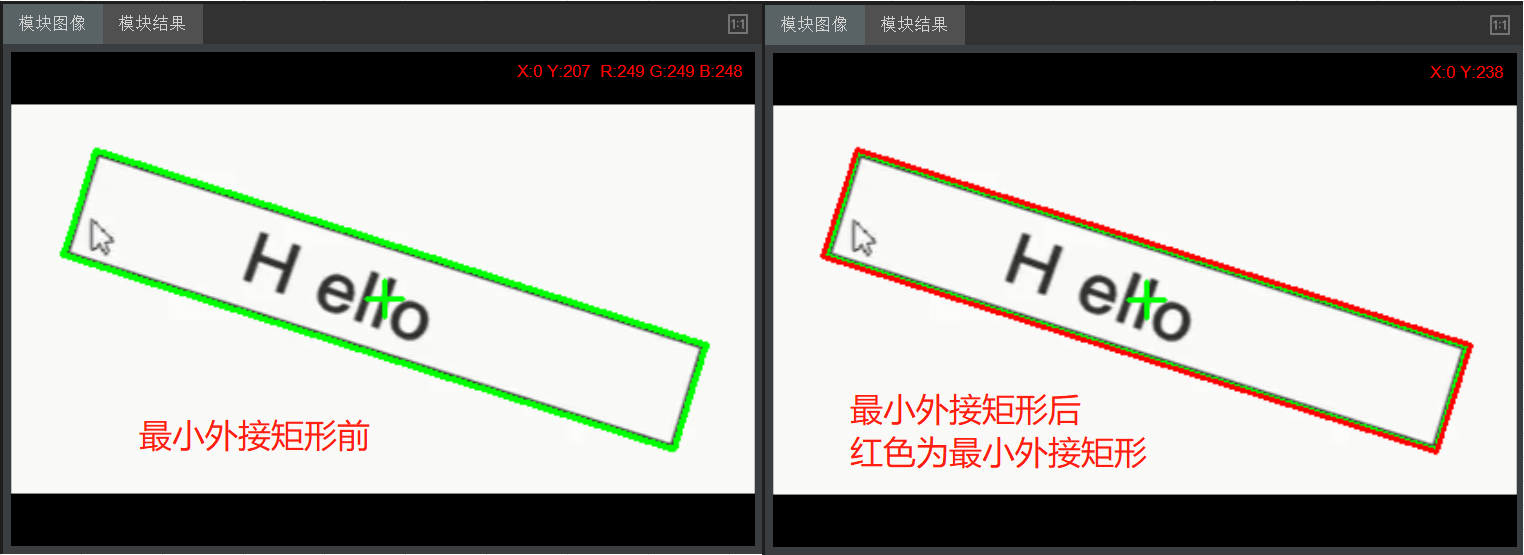 最小外接矩形是在取得轮廓的基础上,用最小面积的矩形将轮廓全部包围起来,矩形是旋转的。