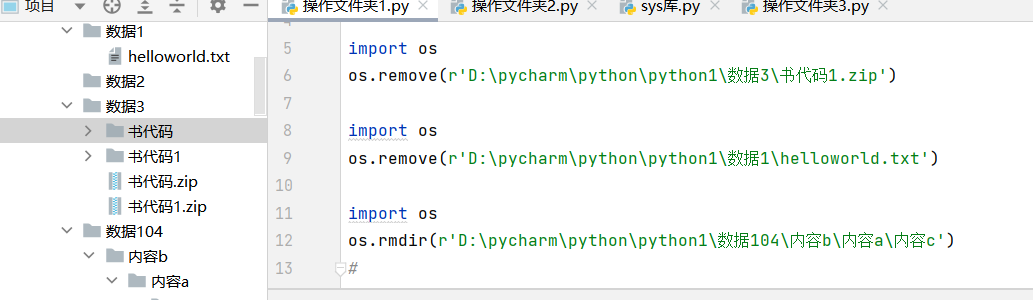 os.remove(r'D:\pycharm\python\python1\数据3\书代码1.zip')