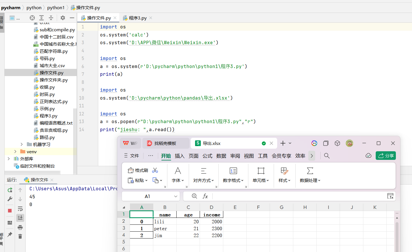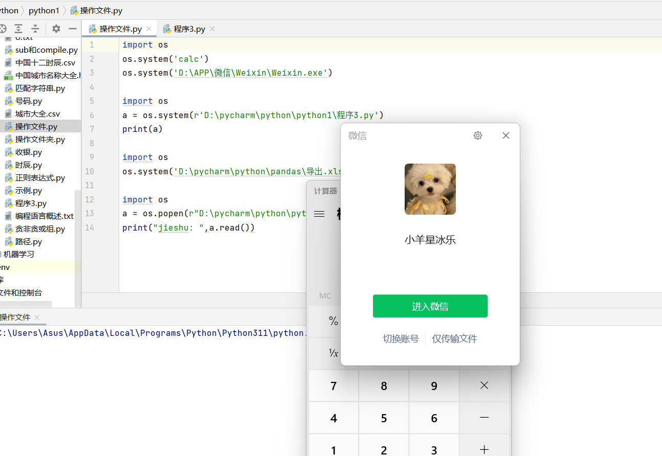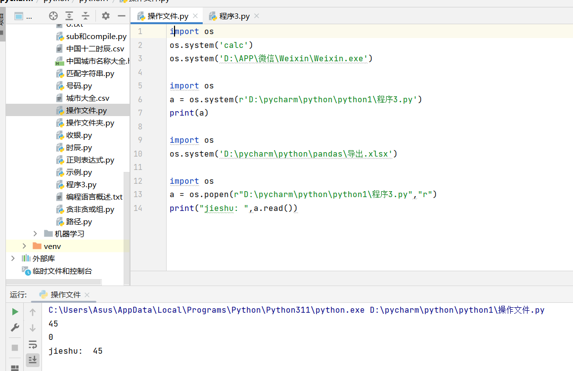 a = os.system(r'D:\pycharm\python\python1\程序3.py')