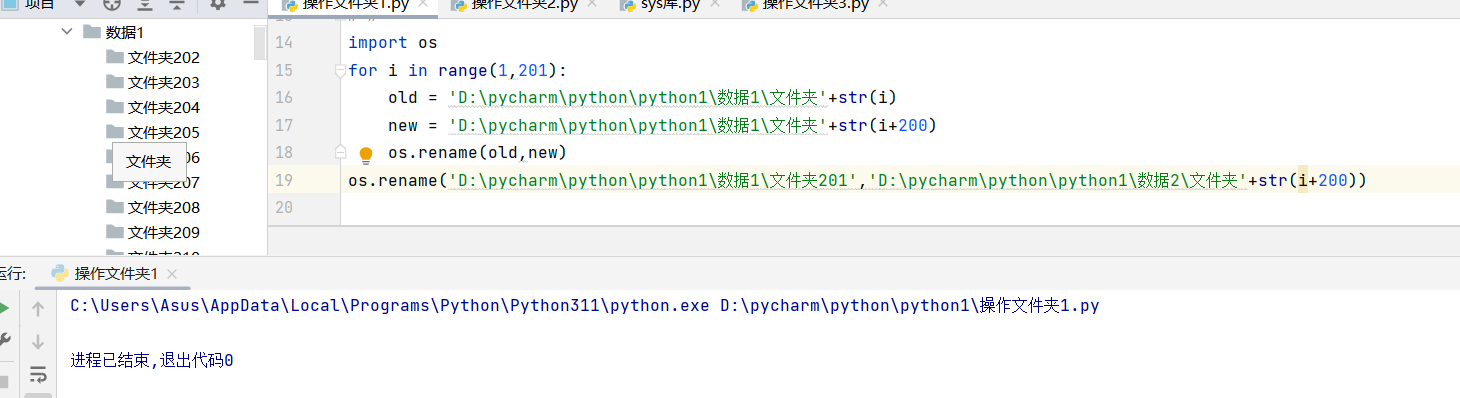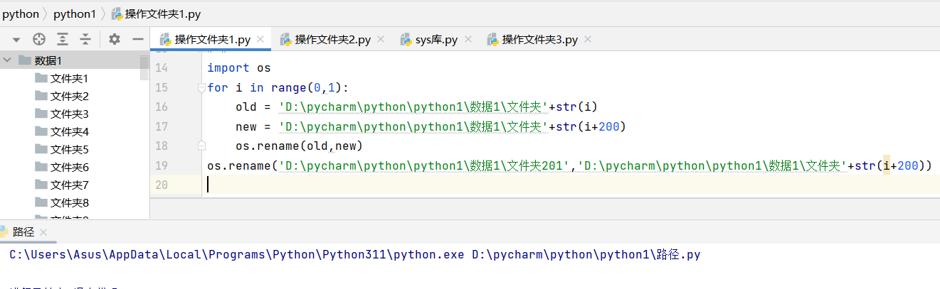 os.rename('D:\pycharm\python\python1\数据1\数据200','D:\pycharm\python\python1\数据1\数据'+str(i+200))
