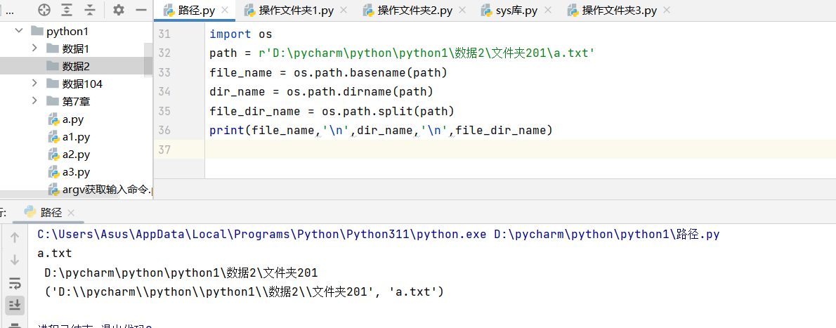 path = r'D:\pycharm\python\python1\数据2\文件夹201\a.txt'