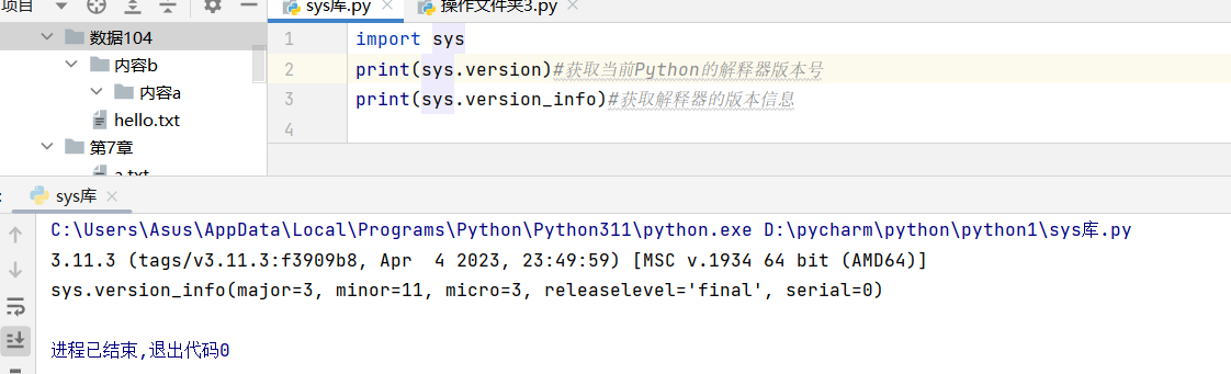 sys库中的version用于获取当前Python的解释器版本号,version_info用于获取解释器的版本信息。