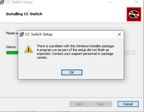 这个报错原因是由于CC-Switch 依赖WebView2,如果本地没有WebView2则安装会直接失败。