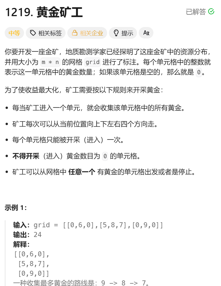 例题:黄金矿工 https://leetcode.cn/problems/path-with-maximum-gold/