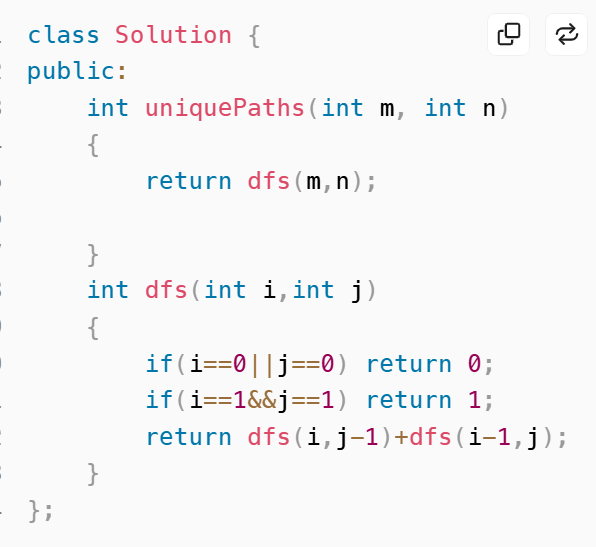 memo[i][j]=dfs(i,j-1,memo)+dfs(i-1,j,memo);