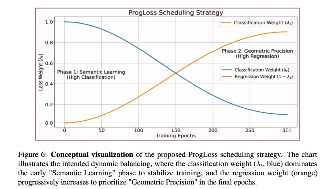 同时优化分类和定位任务对端到端模型来说极具挑战。ProgLoss(Progressive Loss Balancing)引入了一种动态平衡策略。