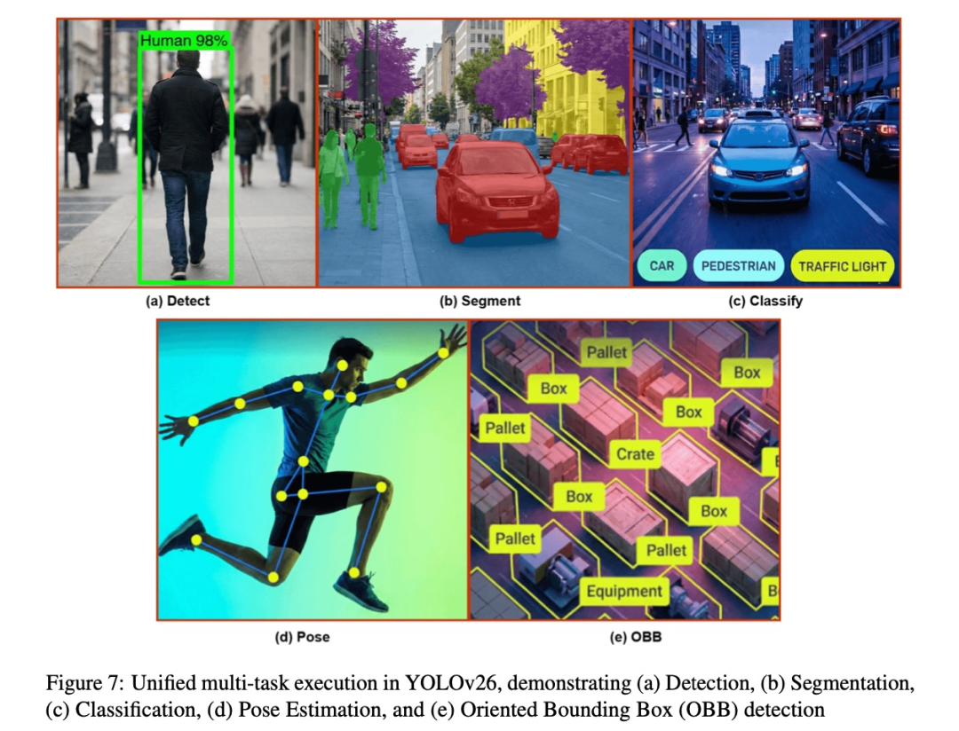 YOLO26的优秀架构设计使其自然支持多种视觉任务。除目标检测外,它还能原生支持: