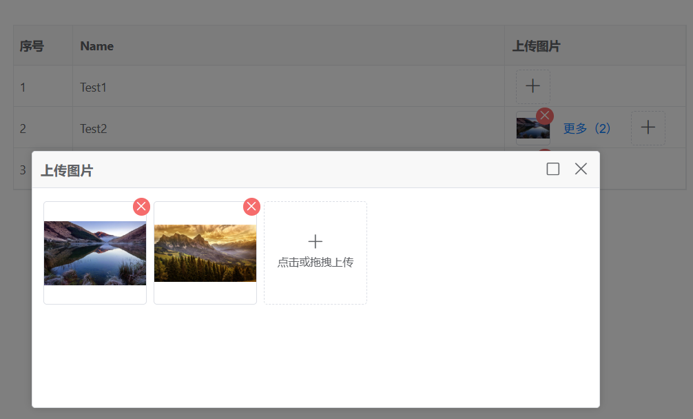点击后显示更多,以及全功能的上传模式,拖拽上传等