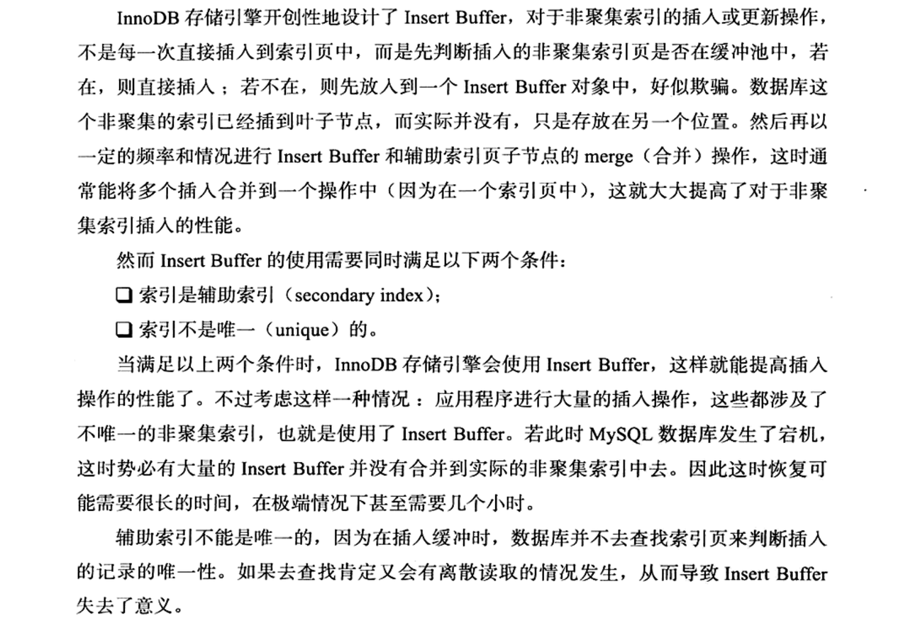 Insert Buffer 必须同时满足以下两个条件才能生效: