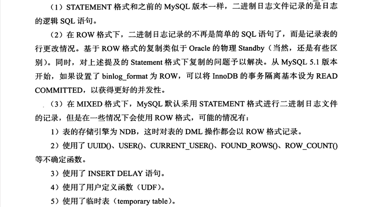 优点 :彻底解决 STATEMENT 格式的主从不一致问题,复制可靠性最高;支持