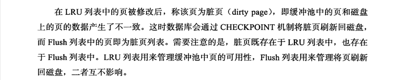 当 LRU 列表中的页被修改后,缓冲池中的数据与磁盘上的数据就产生了不一致,这样的页就被称为脏页。