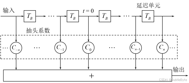 - 输出信号: y ( t ) = ∑ i = − N N C i x ( t − i T B ) y(t) = \sum_{i=-N}^{N} C_i x(t - iT_B) y(t)=∑i=−NNCix(t−iTB)