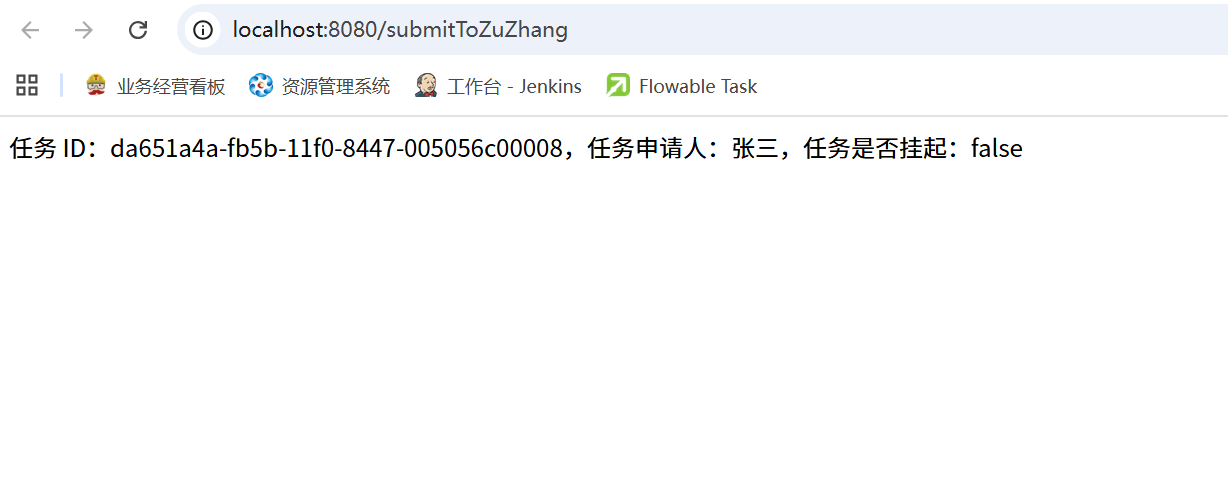 info = "任务 ID:" + task.getId() + ",任务申请人:" + task.getAssignee() + ",任务是否挂起:" + task.isSuspended();