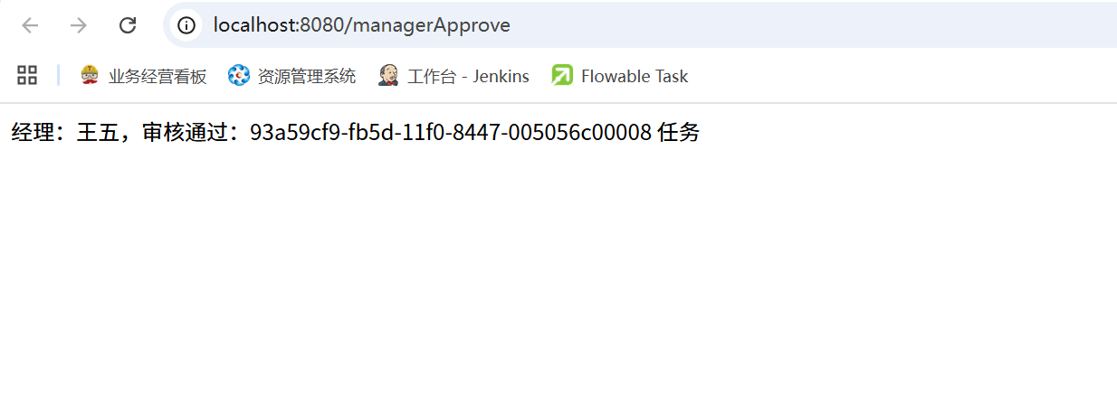 info = "经理:" + task.getAssignee() + ",审核通过:" + task.getId() + " 任务";