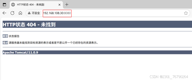 访问 http://192.168.108.30:8080 出现 404,原因是 Tomcat 官方镜像的 webapps 目录为空,默认页面在 webapps.dist 目录: