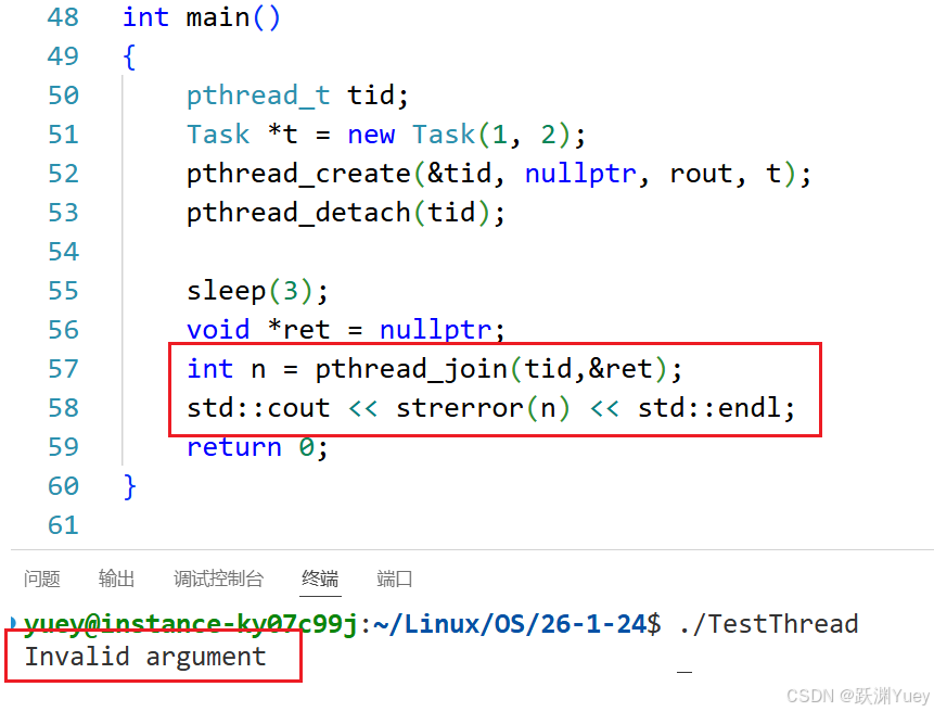 分离的线程,依旧在进程的地址空间中,进程的所有资源,被分离的线程依旧可以访问可以操作。只是主进程不再等待新进程了。如果主线程join被分离的线程,join会失败报错!