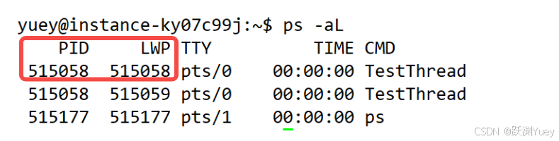 可以看到两个线程的pid是一样的,但是LWP不一样,LWP:light weight process就是轻量级进程