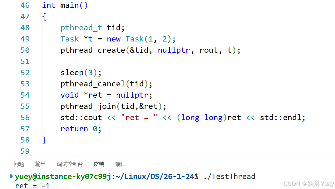 取消线程一定是在目标线程跑起来之后取消,线程被取消,返回值是-1,是PTHREAD_CANCELED