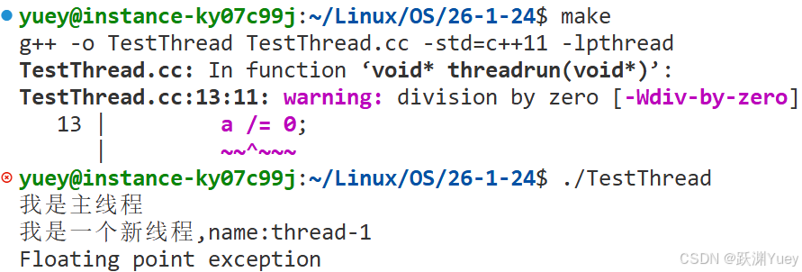 通过上面的 ps axj | head -1 && ps axj | grep TestThread指令查询到只有一个进程,可以验证创建的是两个线程,线程是进程的一个分支。使用kill -9 杀死进程,两个线程都被干掉,说明信号是发给进程的,进程一旦退出,其线程分支也会退出