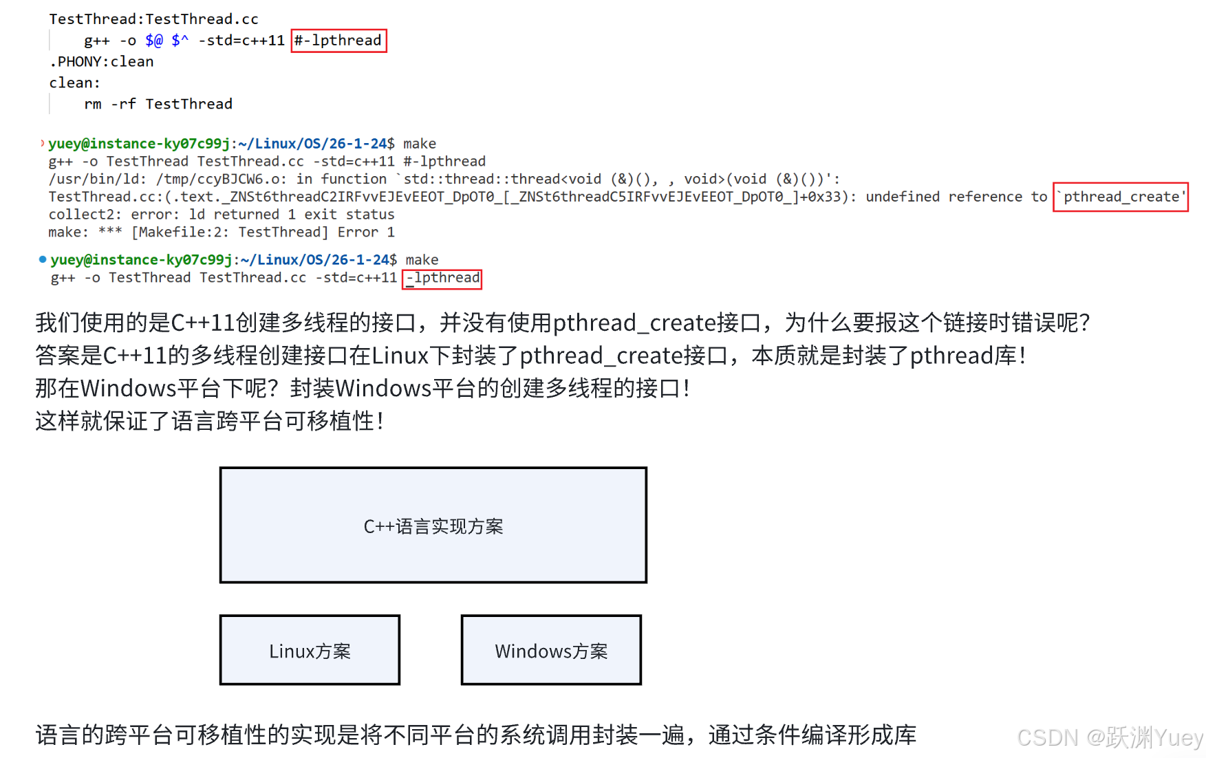 undefined reference to pthread_create没有被定义是因为pthread是第三方库,不是C/C++的标准库,因此在链接的时候需要指明链接的库名称,不需要指明查找路径是因为这个库在lib64目录下,系统会自动去到这个路径下查找