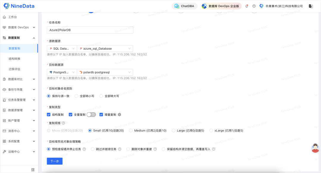 本次版本更新中,NineData 在原有迁移体系之上,新增支持了 Azure SQL Database 到 PolarDB PostgreSQL 的迁移与同步能力。