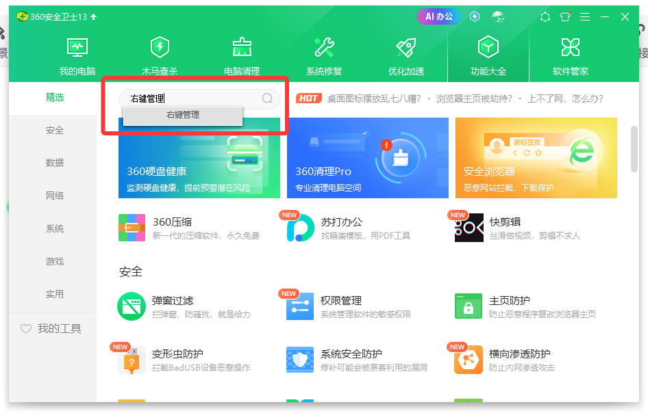 鼠标单击右键,有太多选项,导致删除、重命名等下移。如何删除不必要选项