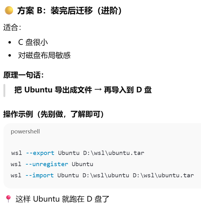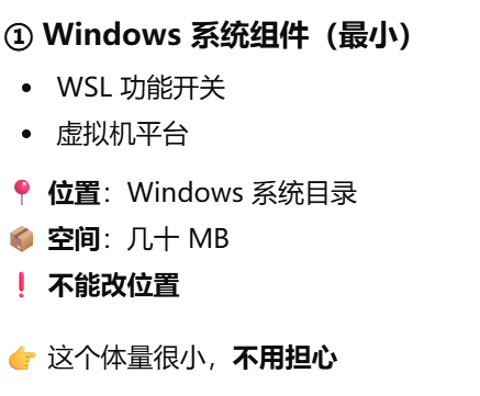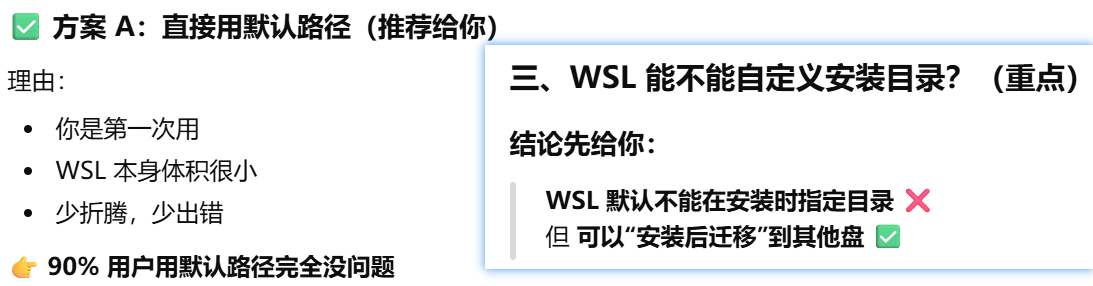- [WSL 能不能自定义安装目录?不能在安装时指定,不管使用不使用wsl --install 命令](#WSL 能不能自定义安装目录?不能在安装时指定,不管使用不使用wsl --install 命令)