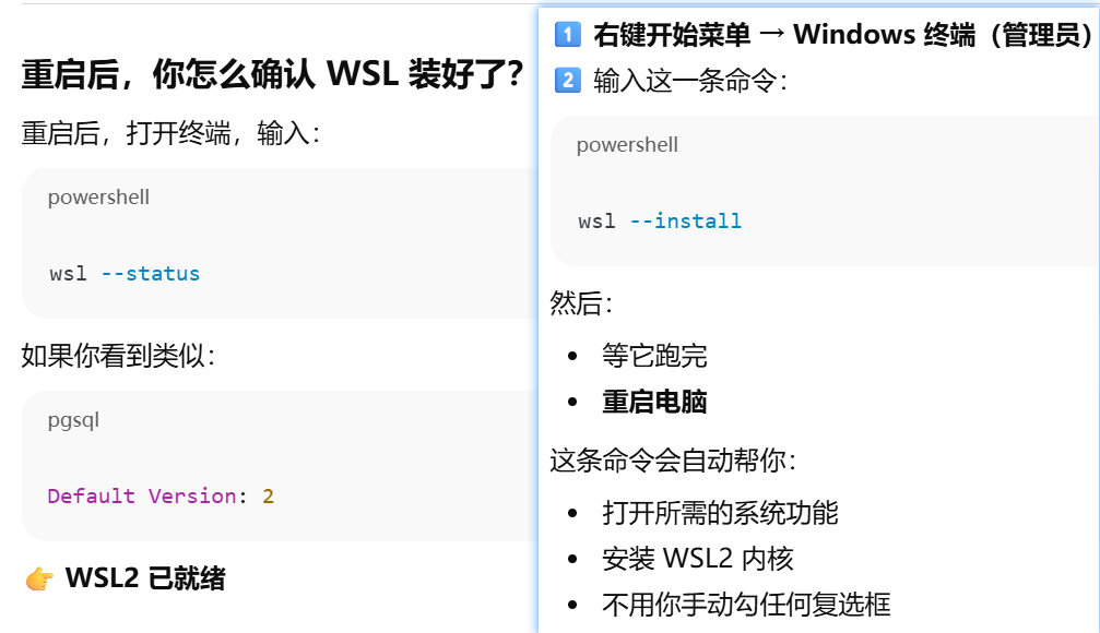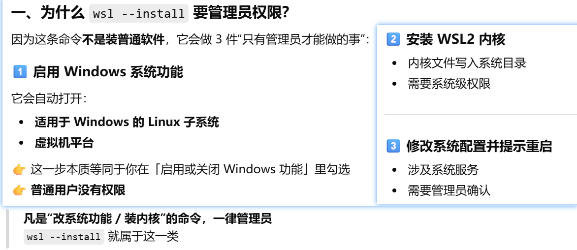 - [wsl --install 会装windows系统组件,wsl2内核,一个 Linux 发行版](#wsl --install 会装windows系统组件,wsl2内核,一个 Linux 发行版)