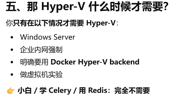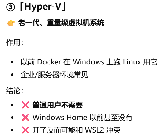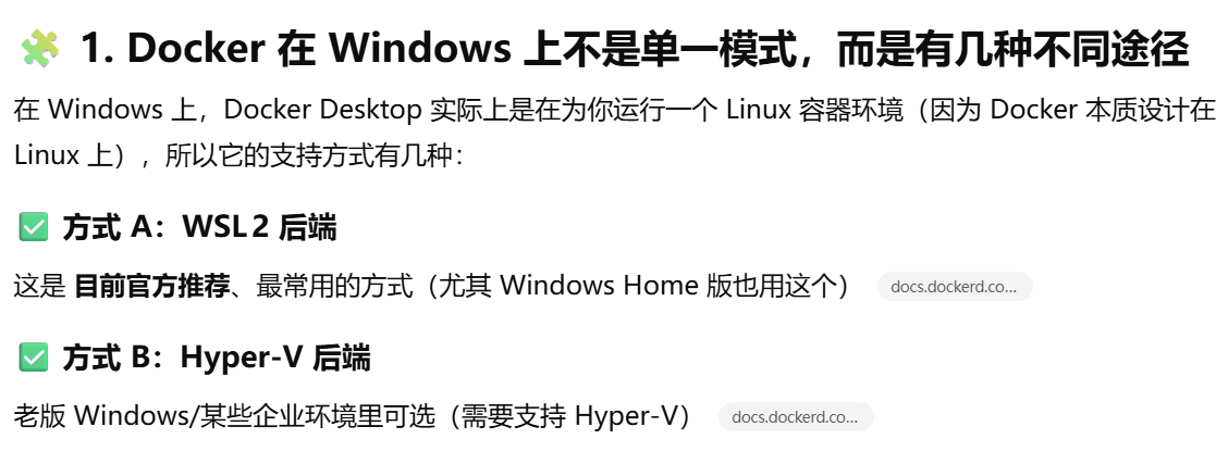- [Docker 需要 Linux 环境(WSL2 或 Hyper‑V)才能正常运行](#Docker 需要 Linux 环境(WSL2 或 Hyper‑V)才能正常运行)