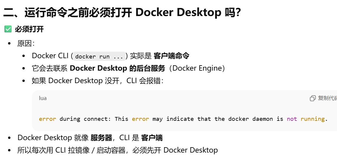 - [Docker Desktop 就像 服务器,CLI 是 客户端](#Docker Desktop 就像 服务器,CLI 是 客户端)