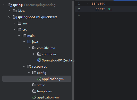 2.当resource目录下有一个config目录,这个目录下的application.yml文件会覆盖上面的文件