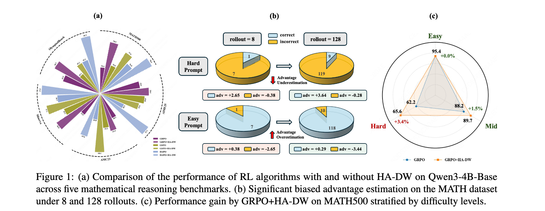 为了纠正群体相对优势估计的固有偏差,本文提出了HA-DW算法,包含两个关键组成部分。