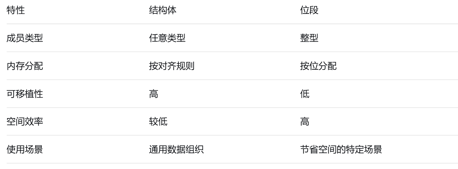 位段使用:仅在需要节省空间且不关心可移植性时使用