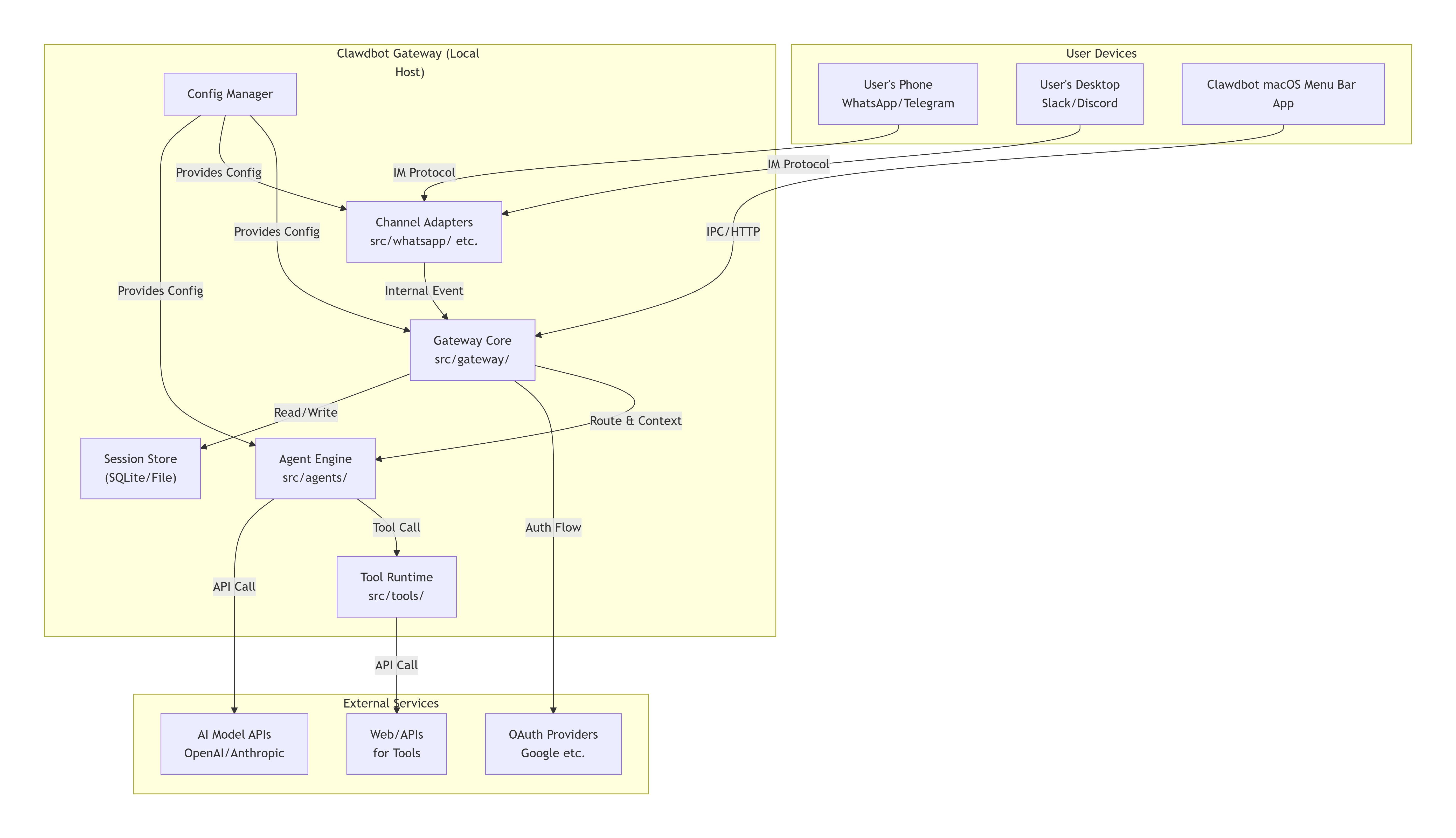 Clawdbot 选择 TypeScript/Node.js 生态,利用了其强大的异步I/O处理能力和丰富的 npm 包(各类 IM SDK),适合事件驱动、高I/O的网关类应用。其架构清晰,模块化程度高,通过 Plugin SDK 预留了良好的扩展性。然而,将复杂状态管理于文件系统和内存中,在向多实例、高可用性部署演进时可能面临挑战。
