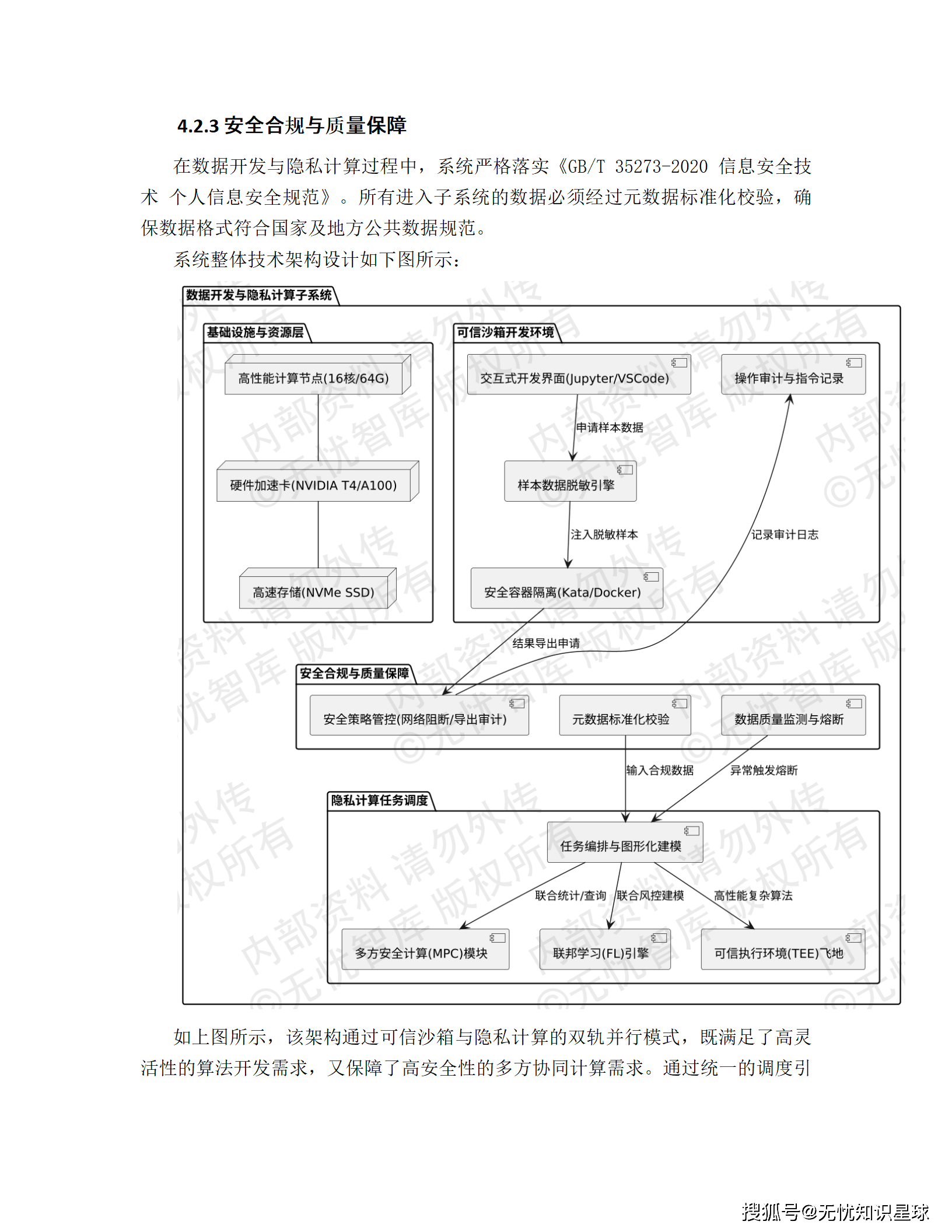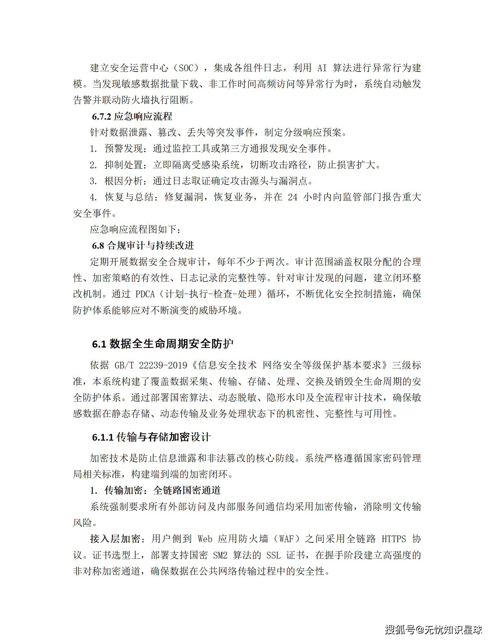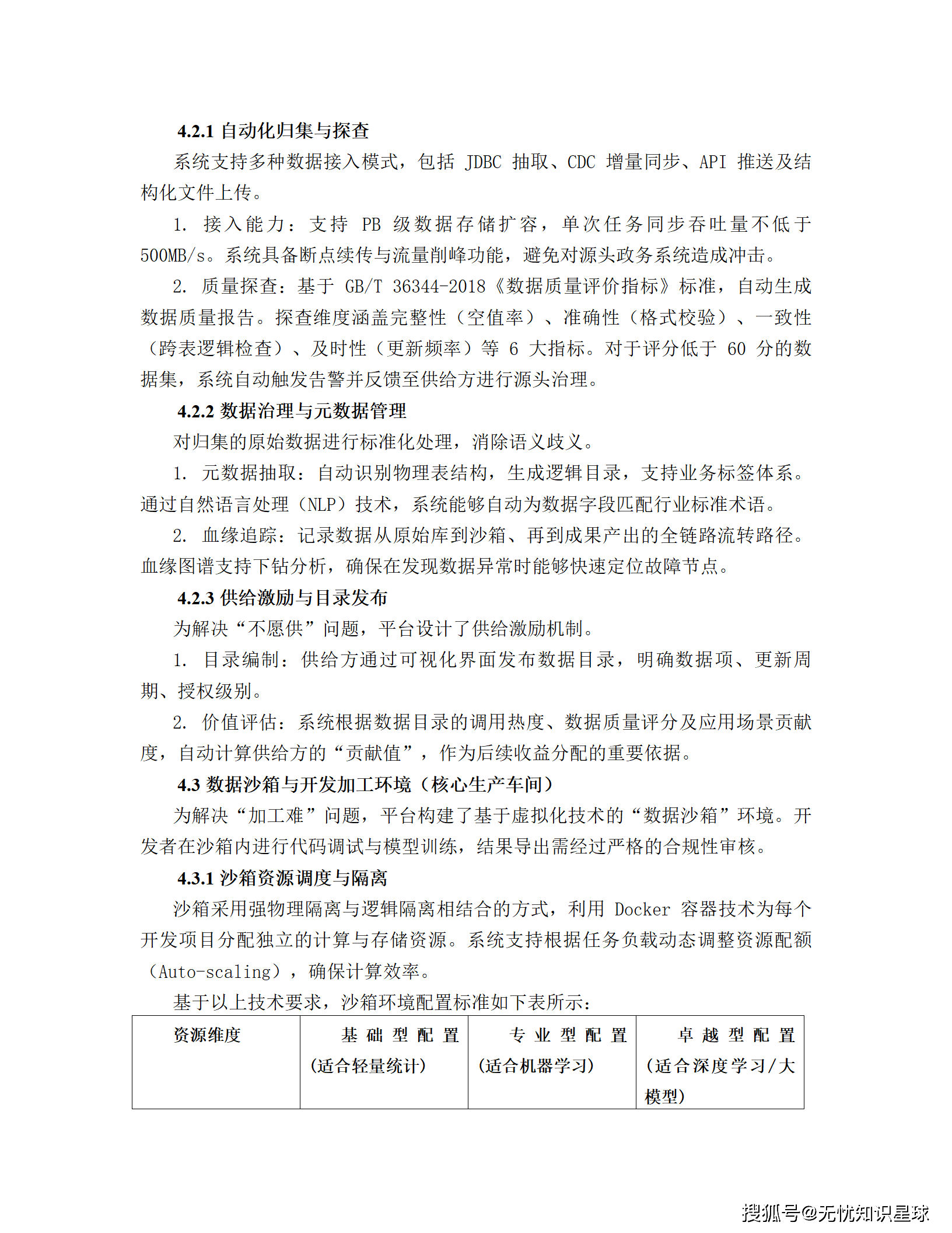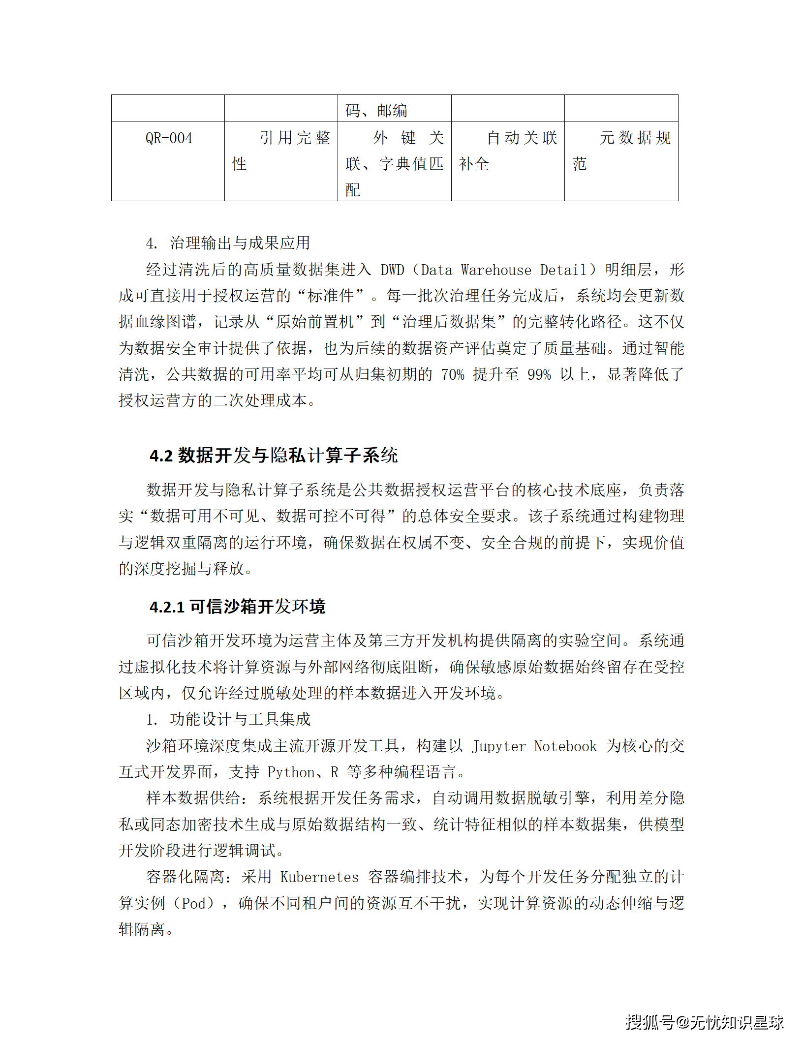 - 完善"一体系":安全监管与标准规范体系安全底线 :严格遵循等保三级标准,部署态势感知、数据脱敏、加密存储及全审计系统。制度保障:制定数据分类分级、数据质量评估、数据资产定价等标准规范,明确各方权责边界。