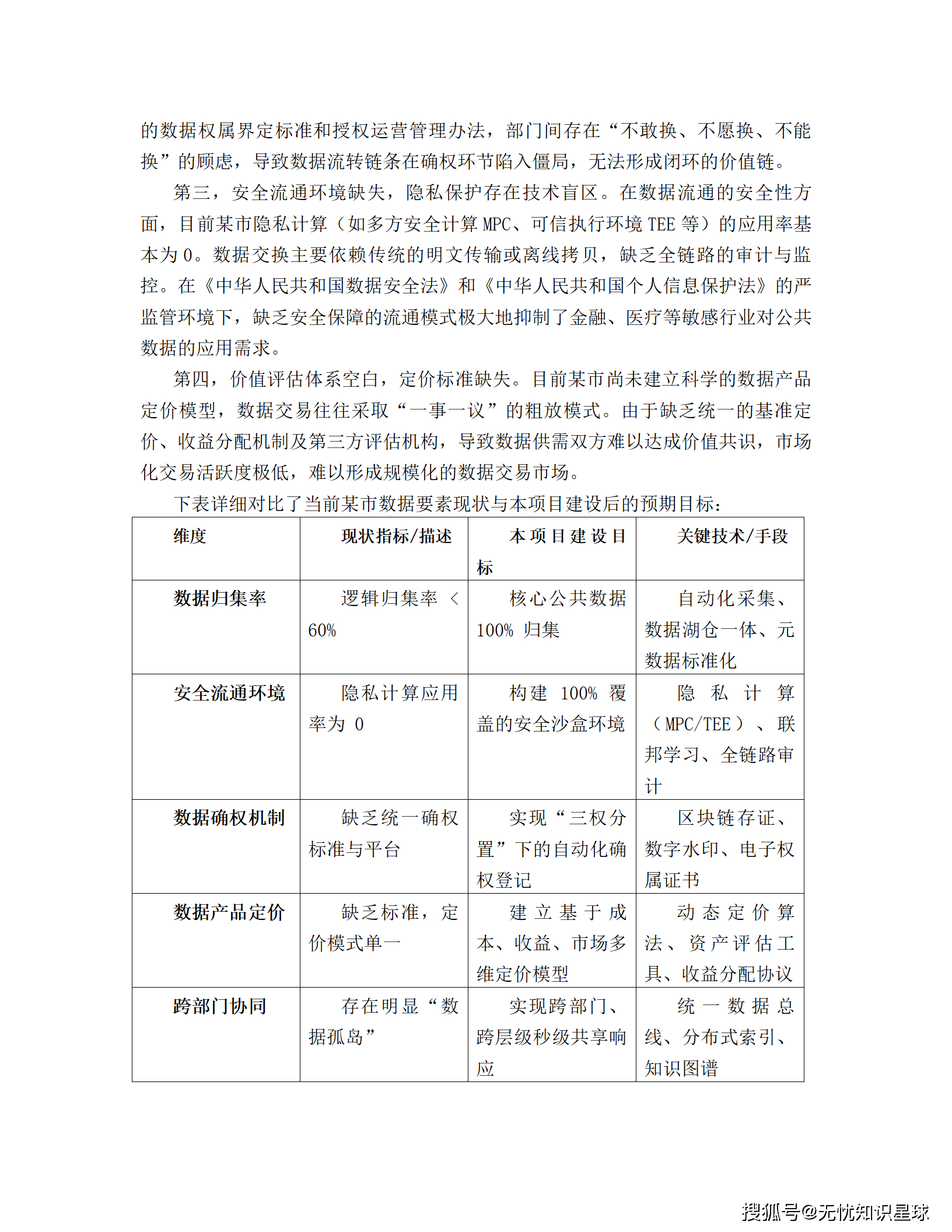 摘要 :在数据被正式确立为继土地、劳动力、资本、技术之后的第五大生产要素的时代背景下,如何激活海量公共数据的价值,破解"不敢共享、不愿共享、不会共享"的制度性难题,成为城市数字化转型的核心命题。某市"十五五"公共数据授权运营平台与数据要素交易系统建设方案,正是对这一时代命题的系统性回答。本文将深度拆解该方案,从其 宏观背景、核心痛点、顶层设计、技术架构、安全体系到量化目标,全方位揭示某市如何通过构建"一平台、一系统、一体系"的数据要素流通基础设施底座,实现从"数据资源"向"数据资产"乃至"数据资本"的跨越式转变,为全国数据要素市场化改革提供可复制、可推广的"某市样板"。